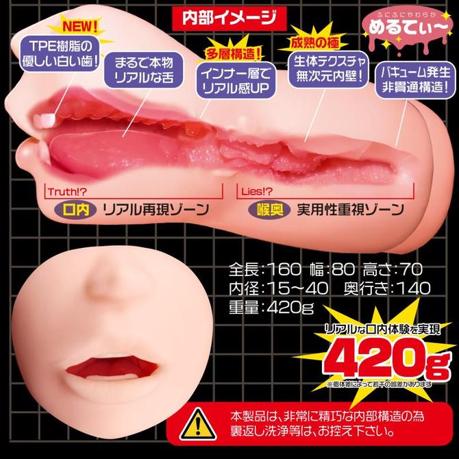 The soft material Amagami Edition is now available for the controversial Mouth of Truth! More than three years have passed since the release of the "Mouth of Truth" that shook the adult toy industry, and we have added soft specifications to both the body and teeth. The elaborate and realistic structure that sets it apart from other products has been retained, and TPE material has been incorporated into the teeth to produce a sweet bite that was not present in the previous version. The stimulation of the intertwining of the thick, soft tongue and dimensionless structure can only be achieved with the prodigal soft version. Please enjoy this one-of-a-kind sensation that cannot be measured by the imagination!
