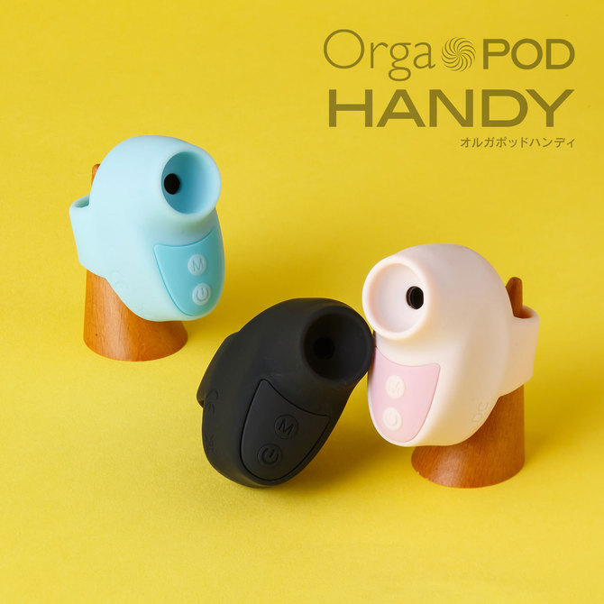 The Orgapod series is popular for its cute design and reliable suction power. Now it is available in an ultra-compact size to be worn on the finger. The new Orgapod Handy is a small suction rotor to be worn on the finger. First, insert your finger through the finger hole on the back of the body. Then press and hold the power switch to start suction. Although it is small and not as powerful as other orgapods in the series, it delivers gentle and comfortable suction vibration. You can choose your favorite color from three colors: pretty pink, blue, and black. Enjoy a fascinating suction experience in a small, easy-to-use package. You can choose your favorite suction vibration from 3 levels of power and 7 vibration patterns. A 40-minute charge provides approximately 30 minutes of continuous use. The device is IPX5 waterproof and can be gently rinsed off after use. Please do not submerge the device in water.