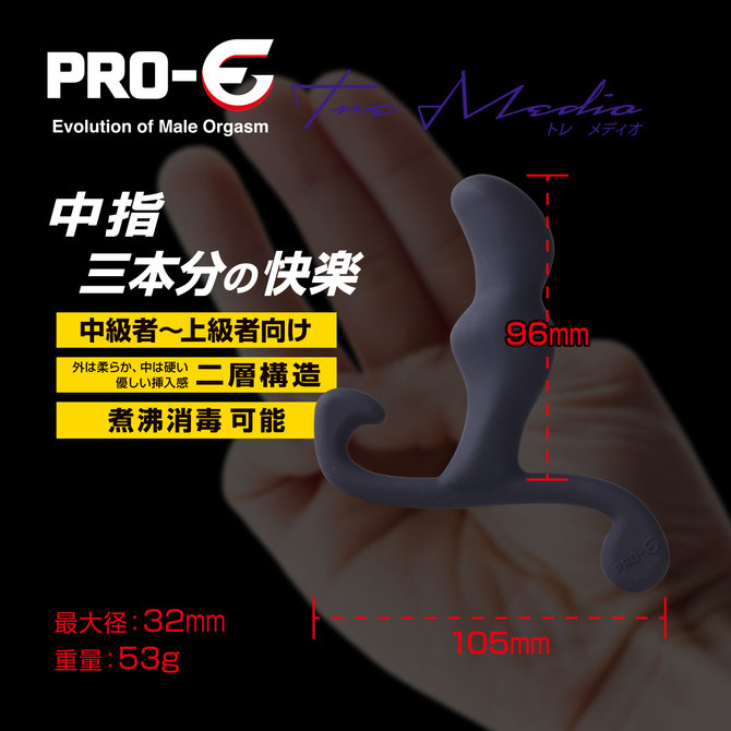 The "Pro-E" series of authentic anal gadgets focuses on prostate stimulation. This is a hard prostate massage gadget suitable for intermediate to advanced users as the final chapter of the series.