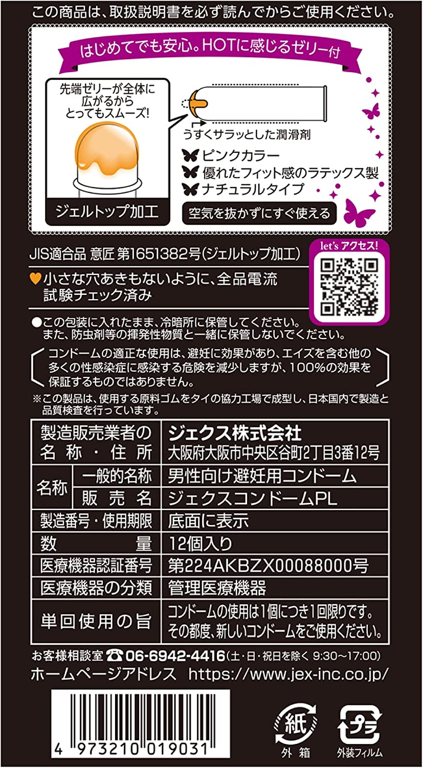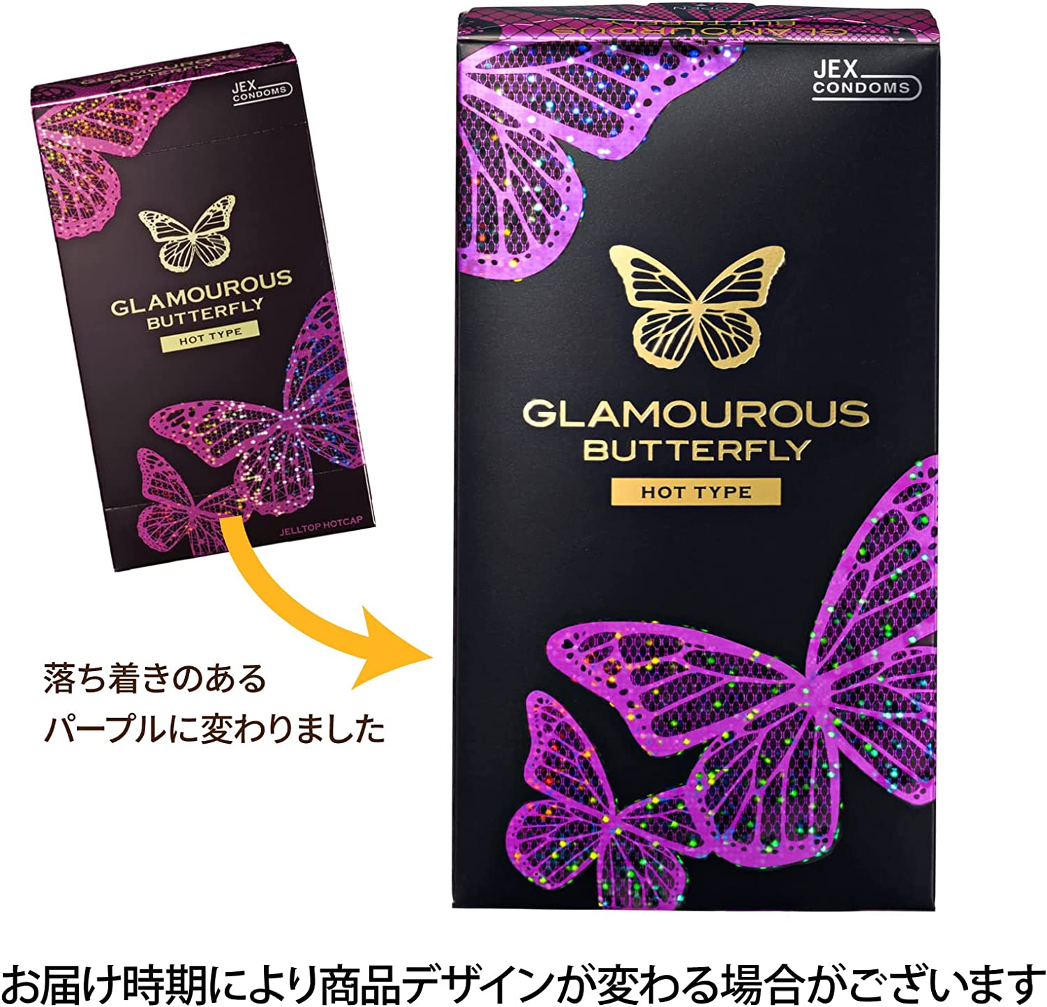 The "GLAMOUROUS BUTTERFLY" condom was created based on the voices of teenagers. A face-to-face survey was conducted with 100 students who are young families to select the design. The product was awarded the Paint Award in 2007 and exhibited at the Kobe Collection in 2008. Safe even for first-time users! The tip of the condom is filled with a mysterious jelly that feels hot!