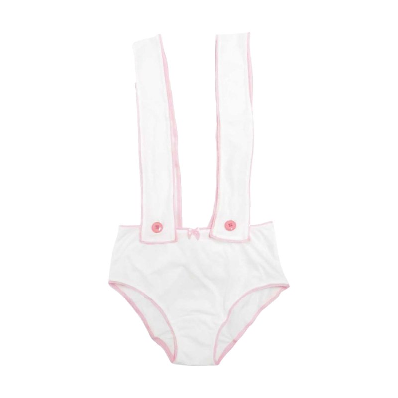 Panties are now overalls! So kawaii when worn under a uniform, such as a maid's uniform! Sexy even if you wear one of these on your bare skin! The length is adjustable with buttons.