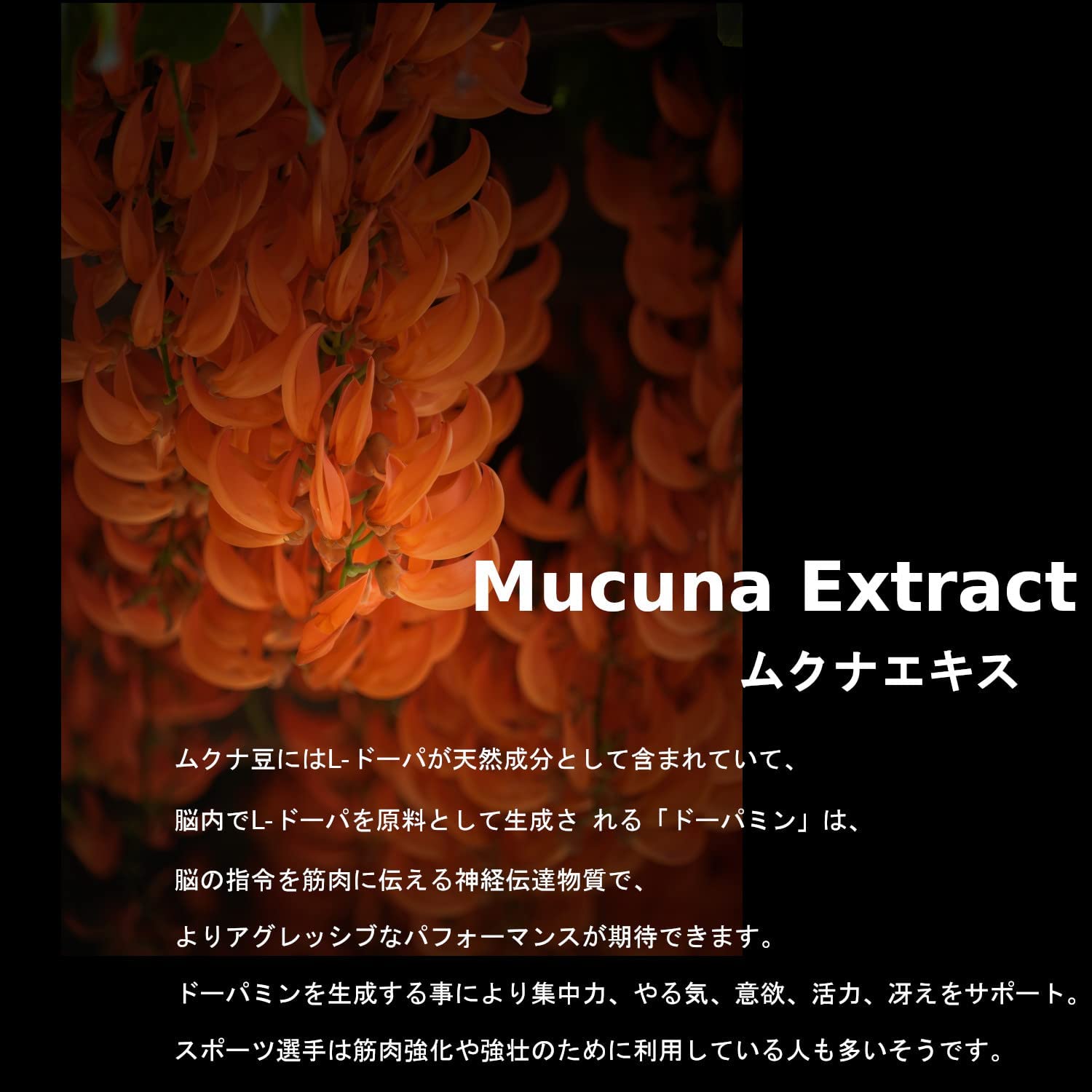 Mucuna beans contain L-dopa as a natural ingredient. Dopamine, which is produced from L-dopa in the brain, is a neurotransmitter that transmits brain commands to muscles, leading to more aggressive performance. By producing dopamine, it supports concentration, motivation, drive, vitality, and alertness. Many athletes use it for muscle strengthening and tonicity.