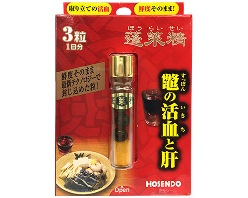 Houraisei," which is part of the "SUGOJYU" series, is a supplement made by freeze-drying the fresh, active blood of the tappon, and granulating it without destroying the nutrients contained in the blood, such as proteins and minerals.