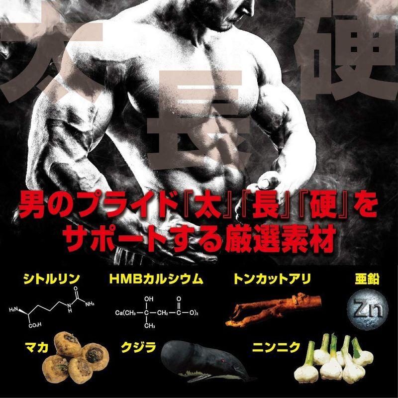 - L-citrulline (manufactured in Japan) , ginger extract, whale extract, HMB calcium, tongkat ali extract, maca powder, fermented black garlic powder, zinc-containing yeast, black pepper extract/sorbitol, crystalline cellulose, silicon citrate, stearic acid Ca