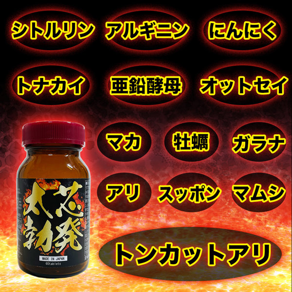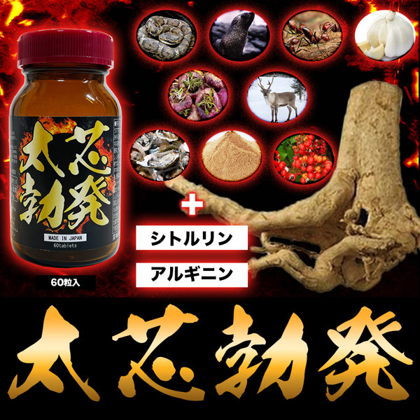 Suppon powder, scorpion powder, royal jelly, garlic powder, zinc-containing yeast, L-citrulline, L-ornithine hydrochloride, L-carnitine fumarate, gamma-aminobutyric acid, guarana powder, fall turmeric, benihana oil, denshichi ginseng, ginseng powder, ginger powder, cordyceps powder, fermented black onion, hijatsu extract powder ( Dextrin, hijatsu extract), rhodiola extract, chili pepper, fermented black garlic powder, milk protein, black ginger extract (black ginger extract, dextrin) / cellulose, calcium stearate, silicon micronized oxide, cyclodextrin, vitamin B1, vitamin B2 L-arginine, L-leucine, L-valine, L-isoleucine, L-tryptophan, L-phenylalanine, L-lysine hydrochloride, L-tyrosine, citric acid, caffeine (extract), vitamin E, betaine