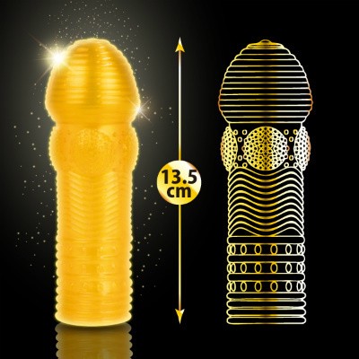 Men's gold sack for wild and gorgeous men. #Thick material allows for long play and supports your own size. #Multiple large and small protrusions enhance stimulation for your partner. #Stretch material fits everyone. Made of safe elastomer.