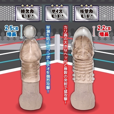Dynamite Head x Dot Hurricane! Set of 2 sacks in different shapes! ##"Dynamite head for intense attack on the portio while preventing premature ejaculation! #"The big head with a high potty and countless protrusions for an onslaught! ##Prevent premature ejaculation and increase endurance! #● Stimulating body will satisfy your partner!