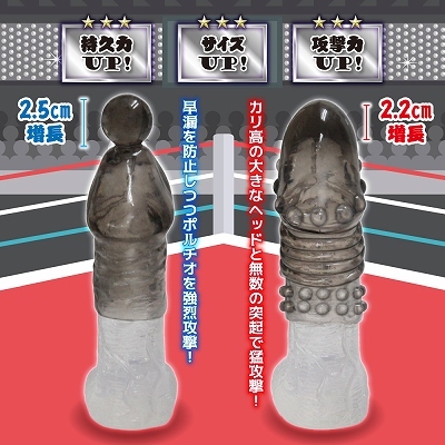 Dynamite Head x Dot Hurricane! Set of 2 sacks in different shapes! #"Dynamite head for intense attack on the portio while preventing premature ejaculation! #"A big head with a high potty and countless protrusions for an onslaught! ##Prevent premature ejaculation and increase endurance! #● Stimulating body will satisfy your partner!