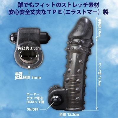 Rotor Button Battery LR44 x 3 pcs (Included)] #Carve your way of life on Ranjo. #Add vibration to the length plus 3cm and thickness plus 1cm, the figure is truly a deadly weapon! ##Men's sack to support super size up and long play! ##Incorporates a vibrating function that doubles the pleasure of hitting the clitoris during insertion. ##Stretch material (TPE) for an easy fit for everyone.