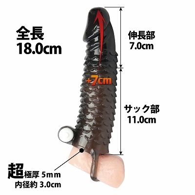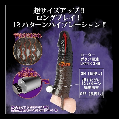 Vibration function / 3 x LR44 button batteries (included)] ##Demonstrate your life style to the woman you love. #Plus 7cm in length and 1cm in thickness with 12 vibrations, the very sight of it is a deadly weapon! #Super size up! Long play! #Scaly body is super stimulating! #Stretch material fits everyone. Made of safe and durable TPE (elastomer).
