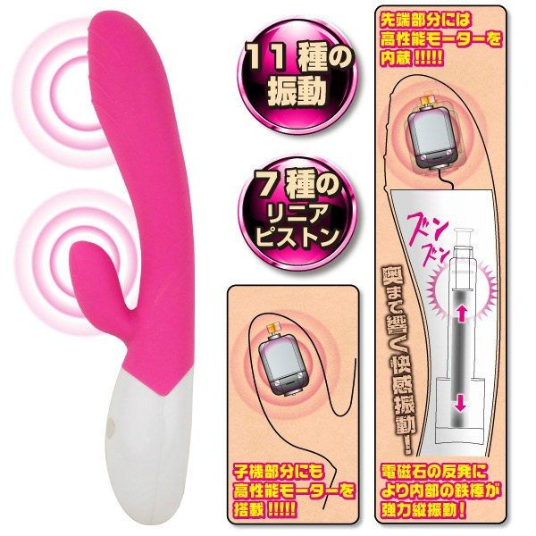 Vibration + Linear Piston Function / USB Rechargeable] ##The repulsion of the electromagnets causes the entire vibrator to vibrate vertically, creating a numbing and pleasurable stimulation! #Moreover, the tip of the vibrator and the inside of the child unit that attacks the clitoris are also equipped with motors. #The threefold stimulation will surely bring you to climax. 10 types of vibrations#●7 types of linear pistons#●Made of silicone#●Waterproof###※After 2 hours of charging, it can work for about 1 hour continuously.