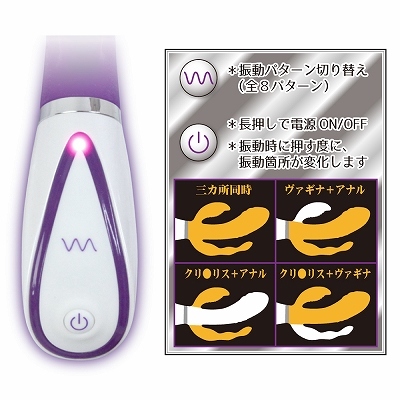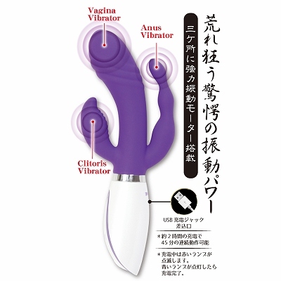 [3-point vibration / USB rechargeable (cord included)] #Amazing vibration power that rages wildly! Super powerful vibrator that makes you come for sure with 3 points at the same time! #Built-in powerful motors at the C-spot, G-spot, and anal insertion points. #The powerful motors are built into the C-spot, G-spot, and anal insertion points to bring you to a climax like you've never experienced before with vibrations that resonate to your core. 8 patterns of vibration#●Equipped with 3 motors#●Fully waterproof#●Medical grade silicone###Recharge time: 120 minutesContinuous operation time: 45 minutes#Battery: [Weight g] 8.0 [Power W.H] 1.4 [Voltage V] 3.7