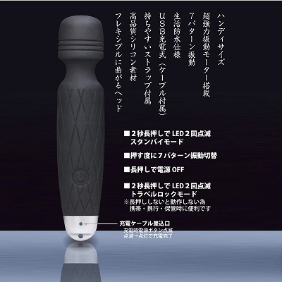 Vibration/USB rechargeable battery] ##Smaller is better than bigger. Handy electric massager with intense shaking! ##Super shaking in spite of its small size! Powerful enough to make you cum. High-performance powerful motor built into the head###7-pattern vibration###waterproof###high-quality silicone###flexible and bendable head##*Battery: [Weight g] 8.4 [Power W.H] 1.48 [Voltage V] 3.7