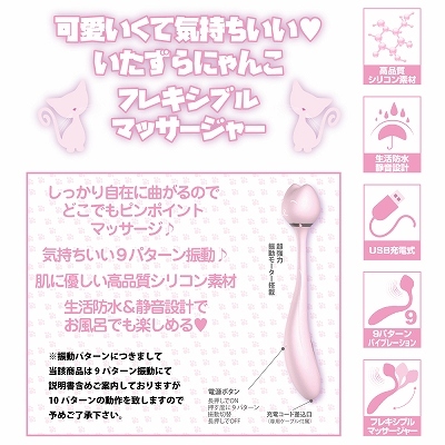 Vibration function / USB rechargeable] #Pinpoint massage anywhere... #Cute cat shaped massager! #Flexible and bendable body fits gently to the target area. ##Life waterproof and silent design allows you to enjoy it in the bathtub! ##10 vibration patterns ##High quality silicone material ##Built-in super strong vibration motor
