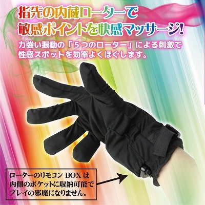 Vibration function / 3 AAA batteries (included)] #5 rotors at fingertips massage sensitive points with pleasure! #The stimulation by "5 rotors" with powerful vibration relieves the sensitive spots efficiently. #The remote control box of the rotors can be stored in the inside pocket and does not interfere with play. ##● For right hand use ##● Battery box and rotor part can be detached by jacking type.