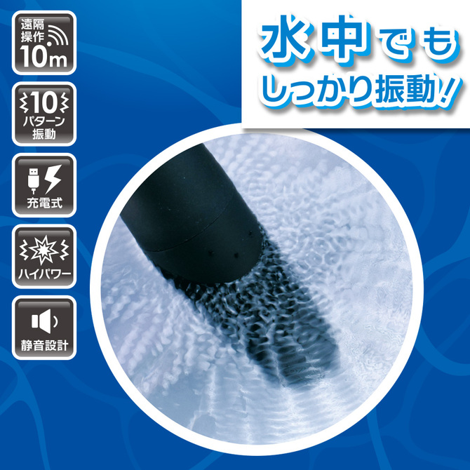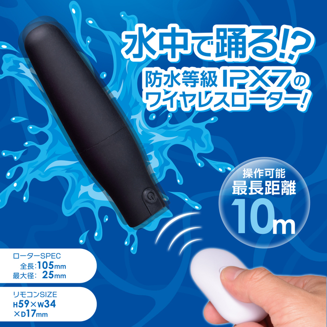 Dancing underwater! Completely waterproof wireless rotor is now available! Waterproof rating IPX7, so you can play while immersed in water! Can be washed with water after play, so it is hygienic and economical. The smart stick shape makes it easy to tuck inside pants and allows insert play, and the small remote control allows you to operate it secretly in your pocket. The main body has a comfortable matte coating and a high-power vibrating rotor with a powerful motor. Pleasantly quiet design. Lithium-ion battery that can be recharged repeatedly.
