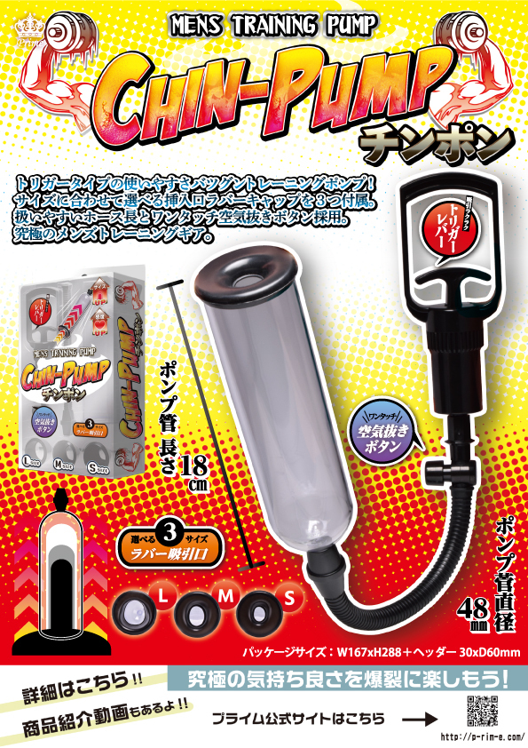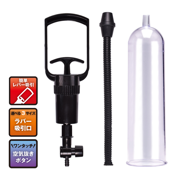 Can UP the sensitivity and size! Easy-to-use trigger type enlargement pump! Three insert rubber caps are included, which can be selected according to the size. Easy-to-use hose length and touch air release button. The ultimate men's training gear. Body size: W60xH605xD51mm Weight: 290g Body weight: 168g Accessories: 3 types of insert attachments (S, M, L)