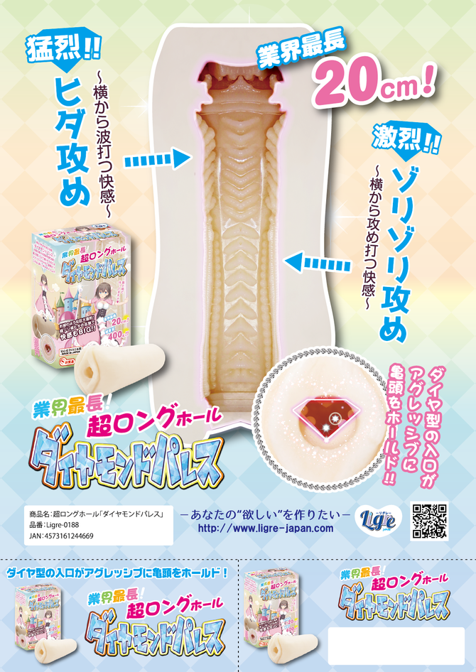 The longest hole in the industry at 20cm! This super long hole has a diamond entrance and shape! Eternally lasting crevices and folds! The super long hole "Diamond Palace" is here! The entrance is shaped like a diamond, and when you wrap your glans around it, you are plunged into an up-and-down concentrated zorizon, making the most of the super-long shape!