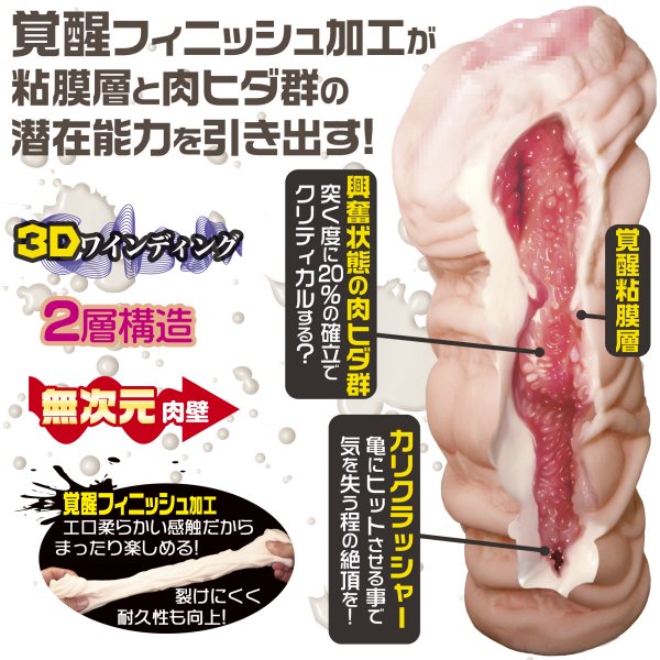 The 3D multi-layered, soggy MONSTER has been awakened with the addition of makari attributes! More erotic, softer and mellow than its predecessor, the G, the Arousal is recommended for those who found the G to be too hard! The multi-layered wall coating reproduces realistic folds of flesh, and the 3-dimensional widing structure creates a sensation of undulation and penetration, while the Kali Crusher will make you climax to the point of passing out!