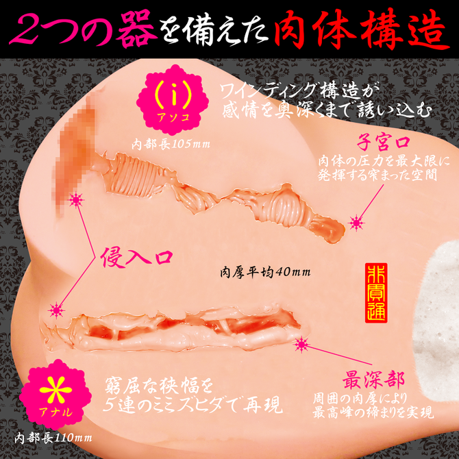 The overwhelming weight of 7.5kg. The torso-shaped gravure body of 47cm in length, "Nekkai Kankei" has descended! Erotic body with two organs, pussy(i) and anus*, easily tickles your sense of shame... Pussy(i) - an entry point with a billabira. The winding structure inside plays with your emotions deep inside. Anal* ... A narrow gate that refuses entry. Five rows of worm folds reproduce the undulating intestinal wall. The F-cup breasts are large enough to squeeze in the palm of your hand and soft enough to be easily titfished. The high-density urethane material keeps the body from losing its shape and maintains the sensual gravure body shape. You can enjoy various positions such as normal position and cowgirl position, which were not possible with the smaller size. Comes with 50ml lubricant.