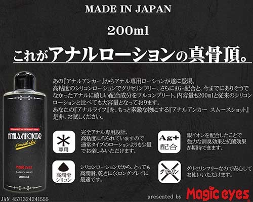 From that "Anal Anchor" comes a high-viscosity, high-lubricity lotion developed exclusively for anal use! The silicone lubricant is suitable for long-lasting play and does not dry out even with a small amount, and the inclusion of AG+ (silver ions) is expected to have deodorant and antibacterial effects. It is also glycerin-free, so it is safe to use on sensitive areas. Please try "Anal Anchor Smooth Shot" which will surely make your anal life wonderful.