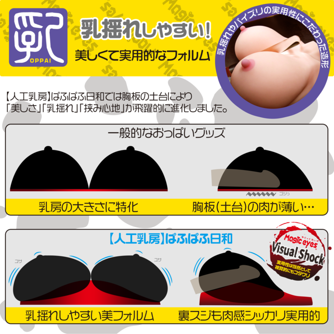 The artificial breast "Pafu Pafu Hiyori" is made by a Japanese factory, so there may be a delay in the supply. It is made of Love Lava Skin with a skin coating (material compliant with the Ministry of Health, Labor and Welfare's Food Sanitation Law, No. 370) and has a three-layer structure consisting of a nipple layer, skin layer, and internal layer for improved usability! Weighing a practical 3.0Kg, it is more than the real thing in terms of beauty, comfort, and extraction. Comes with an oversized poster. Made in Japan
