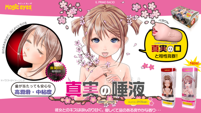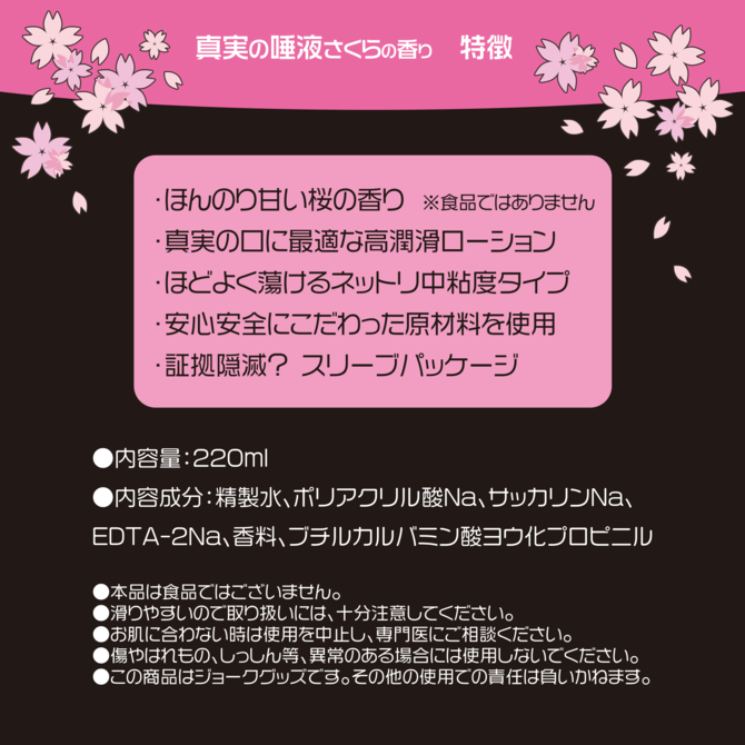 Truth's saliva is now available in the new "Truth's saliva Sakura" with a Japanese-inspired cherry blossom scent! This is a purely Japanese made lotion that is excellent for use with the Mouth of Truth series as well as the hole. The specifications are "medium viscosity" and "high lubricity," a well-balanced design that can be used in any scene. The cute sleeve case can be removed to reveal a plain bottle for those who are concerned about the packaging.