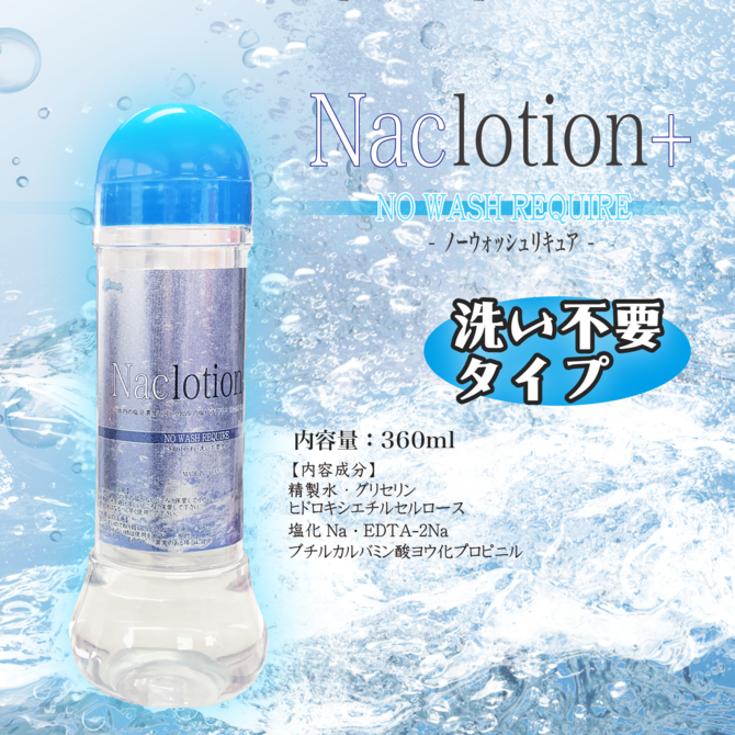 Nac lotion contains pure Japanese sodium chloride at a concentration of 0.85%, the same as body fluids, making it more easily absorbed by the body and providing a natural feeling of comfort. No-Wash Recure is formulated to be easy to wipe off after use, so it takes less time to clean. Made in Japan Content 360ml