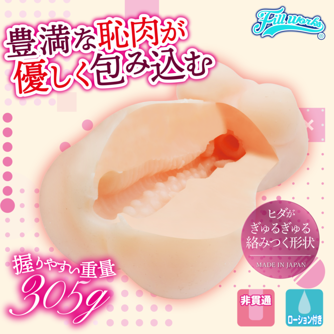 Her voluptuous pubic flesh gently envelops and delivers the deepest vaginal insertion pleasure. Please enjoy the superb strokes of the folds and warts on the lovely body. Made of safe and reliable materials tested by the Japan Food Analysis Center and compliant with Food Sanitation Law Standard No. 370.