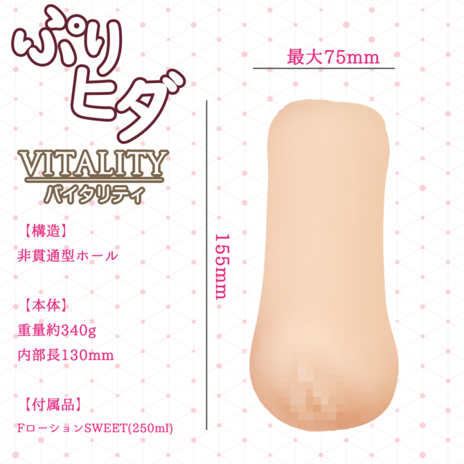 The fine folds and large horizontal folds are stimulated and vacuumed at the deepest part of the cervix to be squeezed out. The included F-lotion VITALITY not only has a generous 250ml volume, but also contains black ginger, arginine, maca, and tongkat ali for high lubricity and energy. It is made in Japan, a safe and reliable country with excellent hole compatibility! Please use Puri Hida VITALITY to become a strong man.