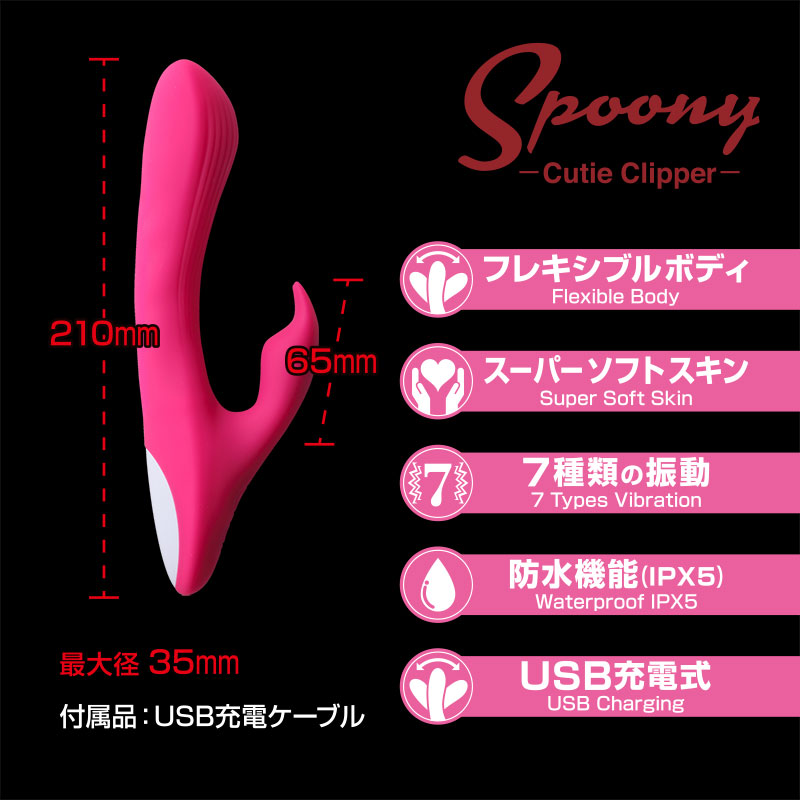 The most distinctive feature is the flexible body, which can be bent at will, allowing the user to position it exactly where they want it and enjoy their own personal pleasure time. The CutieClipper features two finger-like sub-vibrators that can be wiggled between the points to provide both internal and external stimulation. 7 types of vibrations are available to suit your preference. The vivid and elegant pink color is designed to tickle women's fancy.