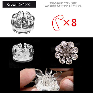 A brush lurks in the center of the crown, providing a double stimulation. Delicate folds continuously stimulate the nipples.