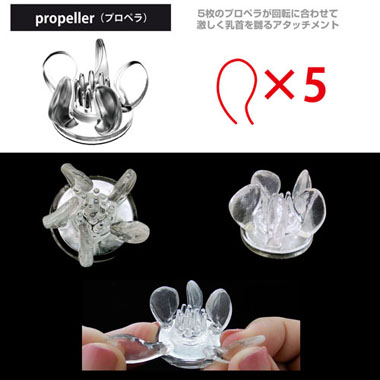 The center of the propeller is slightly wide open to stimulate the tip of the nipple with a small brush.