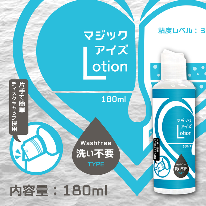A new series of tasteless, odorless, simple, royal style Magic Eyes Lotion! Newly released in an easy-to-handle size. The 180ml bottle is easy to carry, and the disc cap makes it easy to use even with one hand. Contains hydroxyethylcellulose (an ingredient that increases viscosity). The use of ingredients for cosmetics makes this product even safer. The viscosity level is "3" which is a little hard* and feels "sticky-salty". The colorless, transparent bottle allows you to immediately see its viscosity and remaining amount at a glance! We recommend this product for beginners!