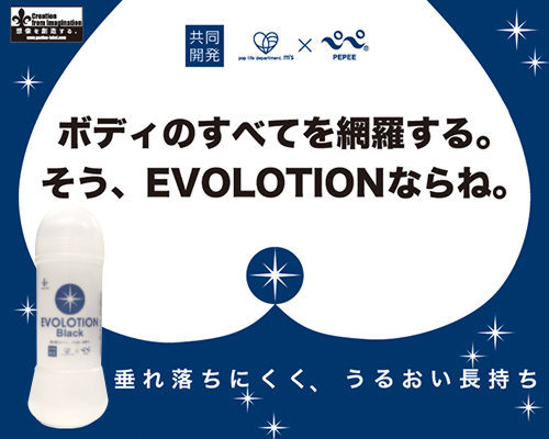 The popular EVOLOTION is now available for anal use. The texture is non-drip and threadbare, and has a good elasticity to support play. Smooth insertion and perfect compatibility with goods.