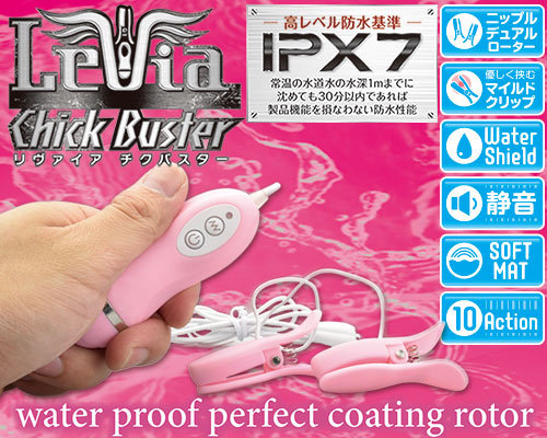 The new "Chikubuster" nipple clip rotor for nipple stimulation is now available in the "Levia" series, the most powerful waterproof rotor with the highest level of IPX7 waterproof performance! The clip rotor is completely waterproof and can be washed, so it can be used repeatedly and economically! Of course, you can also put the remote control part underwater! The soft rubber material is soft to the touch, so there is almost no friction stress. The clip part is also made of a mild clip mechanism that can be clipped firmly but with less pain! The vibration is also effective and high-powered with 10 patterns of function. The ultimate KING OF nipple rotors in every way!