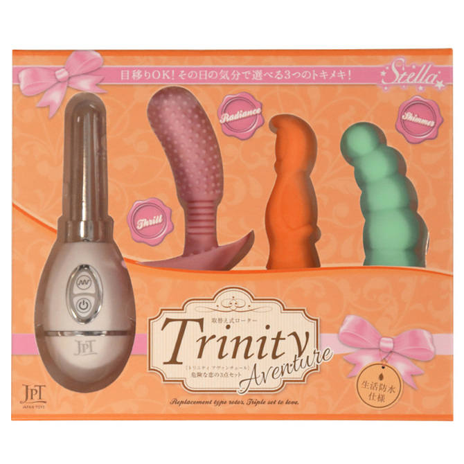 The second version of Stella label's popular Trinity interchangeable rotor vibrator, which allows you to enjoy a variety of stimulation by changing the attachments, is now available under the name 【Aventure】. The controller of the main body has 10 types of vibration patterns built in, and by changing 3 types of attachments, you can enjoy a total of 30 patterns of action. Thrill: The head part is a large warty type. Thrill: The head is large and warty, and the user is taken on an adventure of tingling pleasure that is impossible to return! Radiance: A type with a complex shape. Radiance: A type with a more complex shape, this is a garden of pleasure that will make you play with the shining spot deeper and deeper! Shimmer: Toward the tip of the tip, it tapers off and has an uneven surface like a bead. Shimmer: Tapered toward the tip, with bead-like bumps. Includes 2 AAA batteries for operation check.