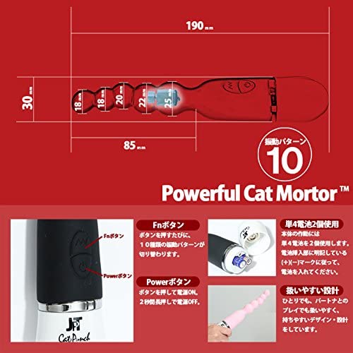 The new brand "Cat Punch" with the motto of "high quality and low price" has finally started! Enjoy an elegant nightlife with powerful vibrations and 10 different pattern switching. Set includes: Main unit x 1, AAA batteries x 2 *Tighten the cap firmly to the end to prevent water leakage.