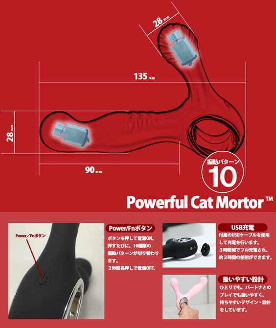 The new brand "Cat Punch" with the motto of "high quality & low price" has finally started! This rechargeable anal toy is equipped with a "free-bending function" that allows you to freely bend it to the angle of your preference. Enjoy an elegant nightlife with powerful vibrations and 10 different patterns. Set contents: Main unit x 1, Magnetic USB charging cable x 1