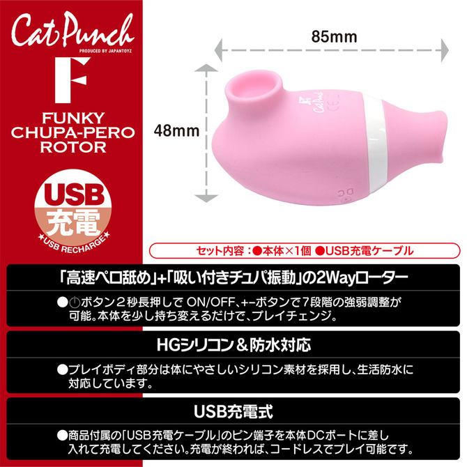 Two different types of stimulation can be enjoyed with this compact body: "High-speed tongue licking" and "Sucking and tupa vibration"! Twin vibration! High-speed tongue licking" rotor: High-speed tongue licking attack as if digging up! The "silicone tongue" vibrates up and down at high speed as if you roll the sensitive prongs with your tongue tip. I want to blame here! Clitoris, Chicubi (male and female), Anus wrinkle (male and female) - "Sucking Chupa Vibration" RotorSucking Chicubiru blubbering vibration attack! Vibration while sucking on the sensitive prongs! Cute "octopus mouth" stimulates at high speed as if it is picking at you. I want to blame here! Clitoris, penis (male and female), surface of the ball sack, and the back of the penis!