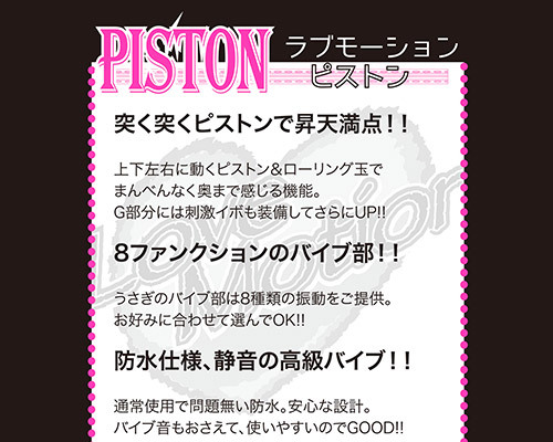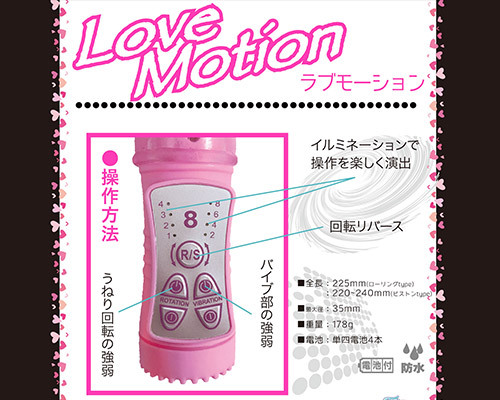 Simultaneous stimulation of the A-spot, G-spot, and U-spot! By attacking all three spots simultaneously - pistoning at the tip, rolling at the midsection, and vibrating at the rabbit part - you may experience the greatest climax of all. Various Functions! The vibrator part has 4 levels of intensity that rotates while performing the piston movement, the rotor part has 8 functions, and the vibrator part has a rotation switching function with 3 types of rotation: forward, reverse, and mixed. The vibrator and rotor parts have separate switches and controls, so you can combine the movements as you wish and make it your own. This is a gem that we have arrived at in pursuit of functionality, not size. The waterproof design allows for easy washing in water, so it can be used cleanly. You can fully enjoy this product because it will not be broken even in the event of a body water jet. Quietness: For those who are bothered by the loud "beep-beep-beep" sound and have trouble concentrating. Rest assured! The quiet design allows you to use it without worrying about the noise, so you can concentrate on your work with all your might. *The rotor part may make a little noise. SizeTotal length 225mm, maximum diameter: 35mm, weight: 178g, batteries: 4 AAA batteries