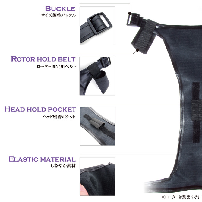 Simply set your rotor in this holder and it will continue to give you endless pleasurable sensations. The remote control can be stored in a pocket, making it easy to go out and play outdoors while wearing it. It is also useful for play while restraining hands and feet, and for simultaneous torture in several places.